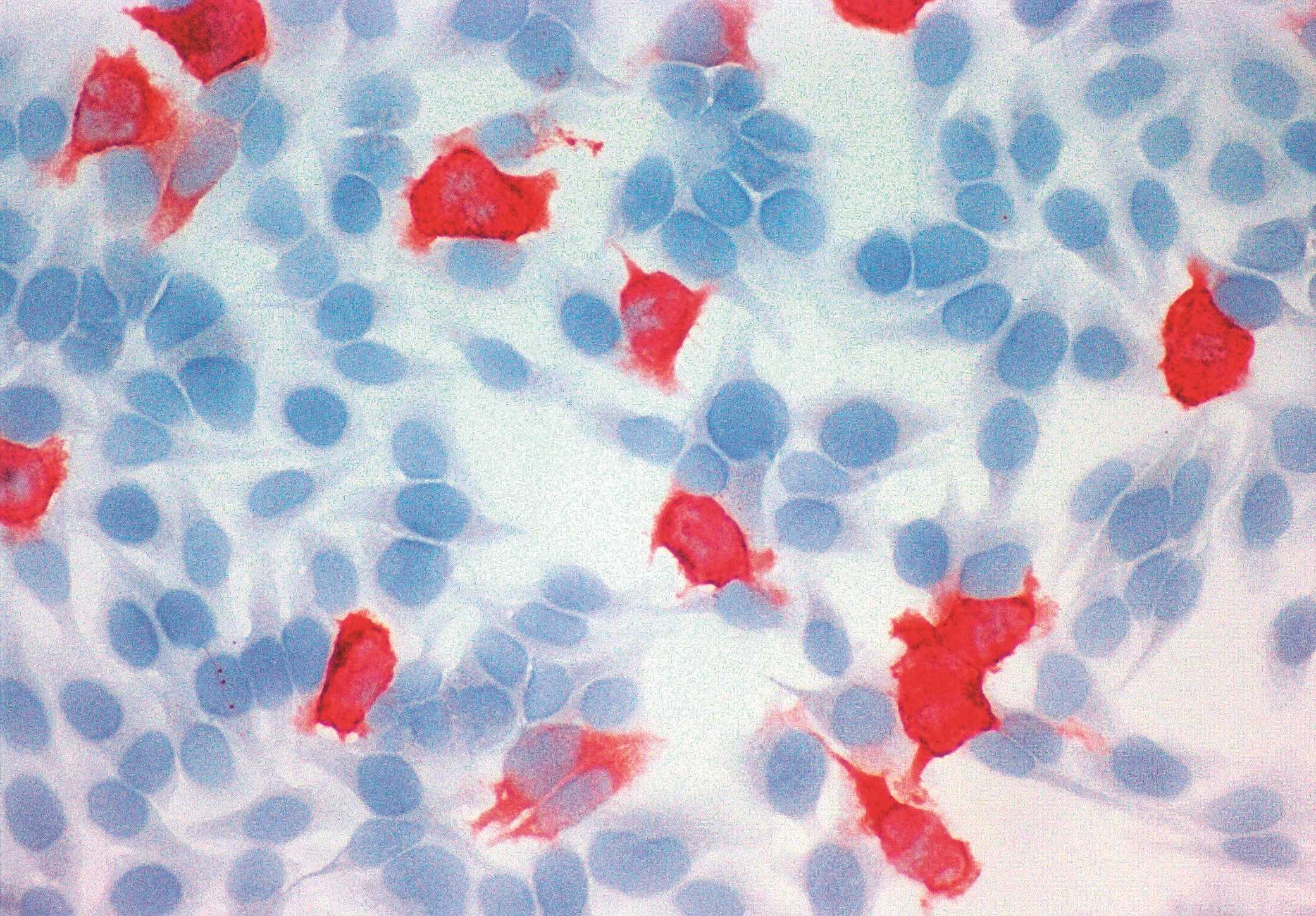Adenoviruses are simple DNA-containing viruses that multiply in the cell nucleus. They induce latent infections in tonsils, adenoids and other lymphoid tissue of man, causing either inapparent or limited illnesses that are followed by complete recovery and persistent type-specific immunity. Most individuals are infected with one or more adenovirus before the age of 15. Approximately 50-80% of tonsils and adenoids removed surgically show adenovirus infection. This antibody is designed for the specific immunohistochemical localization of adenovirus. Monoclonal antibodies directed against viruses allow for the rapid identification of viral infections in tissues. The advantages of identifying viruses immunohistologically are twofold. First, this method decreases the time required for microbial identification by viral culture, and second, this method may demonstrate virus in tissues in which characteristic cytopathic effects have not yet developed and are therefore not detectable by morphological studies alone.