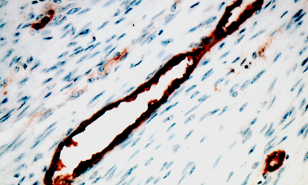 CD105 protein (endoglin) is involved in cellular proliferation and hypoxia induction in angiogenic endothelial cells. It is a transforming growth factor (TGF) -beta1 and -beta3 receptor and modulates TGF-beta signaling by interacting with TGF-beta receptors I and/or II and hence driving tumor growth and metastasis. Endoglin (CD105) marker is better to identify proliferating endothelium involved in tumor angiogenesis than pan-endothelial markers such as CD31, CD34 , Factor VIII etc. It can be used as a marker for microvessel density measurement and also in tumor imaging