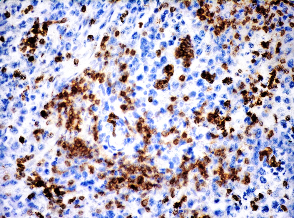 CD3 (Cluster of Differentiation 3) is a complex of proteins that associates directly with the T cell antigen receptor (TCR). CD3 is composed of five invariant polypeptide chains that associate to form three dimers. The five invariant chains of CD3 are labeled gamma, delta, epsilon, zeta, and eta. The CD3 is involved in T cell development and survival. It is expressed on T cells in Thymus, peripheral lymphoid tissue, blood and bone marrow. CD3 is a commonly used marker for identification of T cell and T cell derived malignancies. This CD3 antibody has been validated by the 9th International Conference on Human Leukocyte Differentiation Antigens (HLDA9).