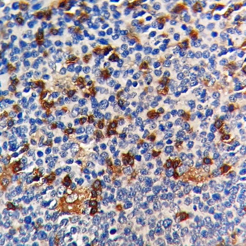 CD4 (cluster of differentiation 4) is a membrane glycoprotein present on the surface of immune cells like T helper cells, some B-cells, macrophages, and granulocytes. It has four immunoglobulin domains (D1, D2, D3 and D4) on extracellular surface of the cell. It has an important role in the differentiation of thymocytes and the regulation of T-lymphocyte/Blymphocyte adhesion. Its expression is also seen in specific regions of the brain. Most of the T-cell lymphomas are derived from T-helper/ regulatory cell subset, hence majority of mature T-cell neoplasms are CD4+/CD8-. Anti-CD4 antibody is used in the diagnosis of lymphoproliferative disorders to evaluate tumors with CD4 aberrant expression.