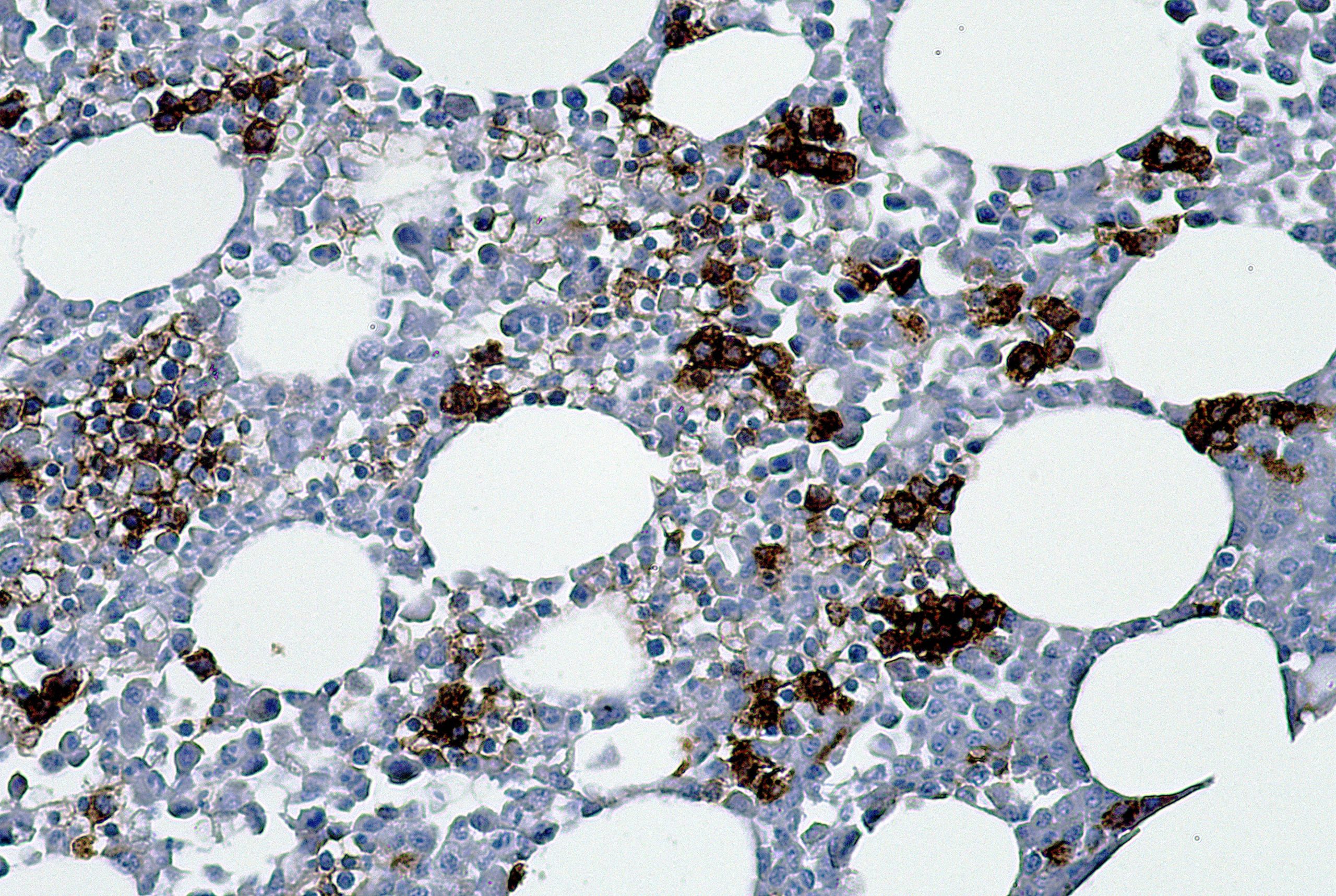 This antibody reacts with CD71 antigen (also known as T9 or Transferrin Receptor), a homo-dimeric type II membrane protein consisting of two identical sub-units of approximately 95 kD covalently linked by two intermolecular disulfide bonds. Transferrin Receptor is present on 10% of thymocytes, activated lymphocytes, myelocytes, and nucleated erythrocyte precursors. Broad distribution of Transferrin Receptor (TR) has been observed on carcinomas and sarcomas of various origins and malignant lymphomas. Clone H68.4 is specifically directed against the human Transferrin Receptor cytoplasmic tail.