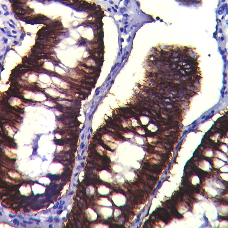 Claudin-4 (Clostridium perfringens enterotoxin receptor) belongs to the 20-member family of claudins, transmembrane cellular adhesion proteins localized at epithelial and endothelial tight junctions. It is a 209 amino acid molecule with four transmembrane segments. These are essential components of tight junction charge-specific channels that regulate paracellular ion flux. It plays a role in internal organ epithelial tissue development and function during pre- and postnatal life.Phosphorylation of Claudin-4 regulates paracellular epithelial permeability. The overexpression of Claudin-4 has been shown to decrease paracellular electrical conductance due to a selective decrease in Na+ permeability, with no significant decrease in Cl-permeability. It is also up-regulated in several carcinomas.Expression of Claudin-4 has been associated with either poor prognosis or a more favorable diagnosis, depending on the type of cancer. In ovarian carcinoma cells, Claudin-3 and Claudin-4 exhibit upregulation at both mRNA and protein levels. Claudin-4 is also overexpressed in pancreatic cancer tissues and cell lines, and in other epithelial cancers. Claudin-4 has been shown to distinguish adenocarcinomas from malignant mesothelioma with 99% specificity in malignant effusions. Basal-like tumors also demonstrated overexpression of Claudin-4.