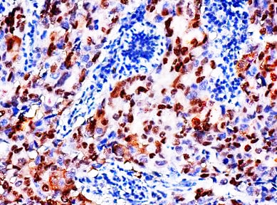 Cyclin D1 belongs to the Cyclin D family. Cyclin D1 is required for the cell cycle G1/S transition. Cyclin D1 forms a serine/threonine kinase holoenzyme complex with and functions as a regulatory subunit of CDK4 or CDK6. Cyclin D1 also phosphorylates and inactivates the retinoblastoma protein and promotes progression through the G1/S phase. Amplification or overexpression of cyclin D1 plays a pivotal role in the development of various human tumors including parathyroid adenoma, breast tumor, colon tumor, lymphoma, melanoma and prostate tumor. Cyclin D1 also associates with and regulates the activity of transcription factors, coactivators and corepressors that govern histone acetylation and chromatin remodeling proteins.
