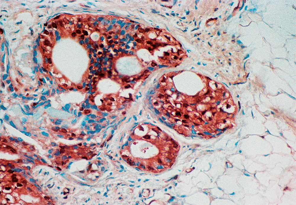 Estradiol plays an important role in the genesis and development of human breast cancer and endometrial carcinoma. It is synthesized primarily in the ovary, but also in the placenta, testis, and possibly the adrenal cortex. Estradiol is also produced by testicular Leydig tumors, as well as by Sertoli tumors of the testis and ovary. It is also produced in mammary gland carcinoma, and carcinoma of the adrenal cortex.