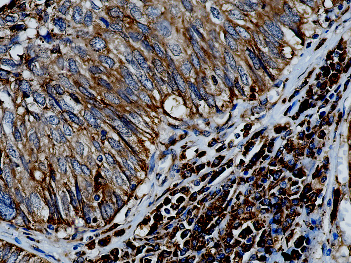 Interleukin-15 (IL-15) also designated IL-T, is a 14 kDa cloned cytokine that regulates T and natural killer cell activation and proliferation. It shares several biological activities with IL-2 and induces IL-2-like effects in lymphocyte development and homeostasis. IL-15 is produced by dendritic cells, epithelial cells, human stromal cell line (IMTLH), fibroblasts, and monocytes. IL-15 is a widely expressed pro-inflammatory cytokine which plays an important role in the activation of a number of important intracellular signaling molecules during immune responses and associated with several inflammatory disorders, including rheumatoid arthritis, pulmonary inflammatory diseases and psoriasis.