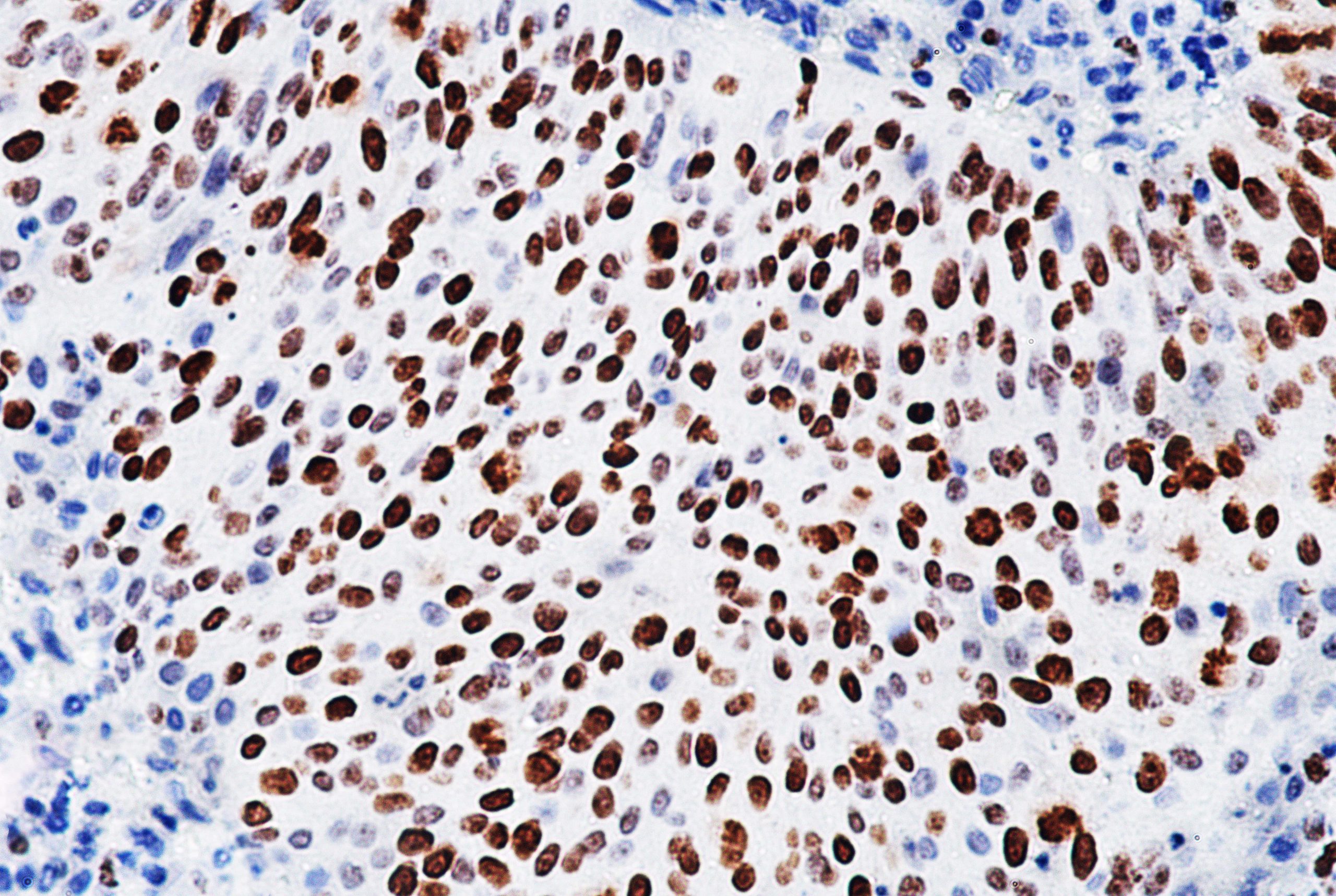 Ki-67 is a nuclear protein that is only present in proliferating cells. This makes Ki-67 a useful marker for distinguishing proliferating cells. Ki-67 is present in the cells during all times of the cell cycle except for G0 phase. Due to this characteristic, Ki-67 can be used to reliably calculate the growth fractions of cell populations. This can make Ki-67 useful in providing efficacy of cancer.