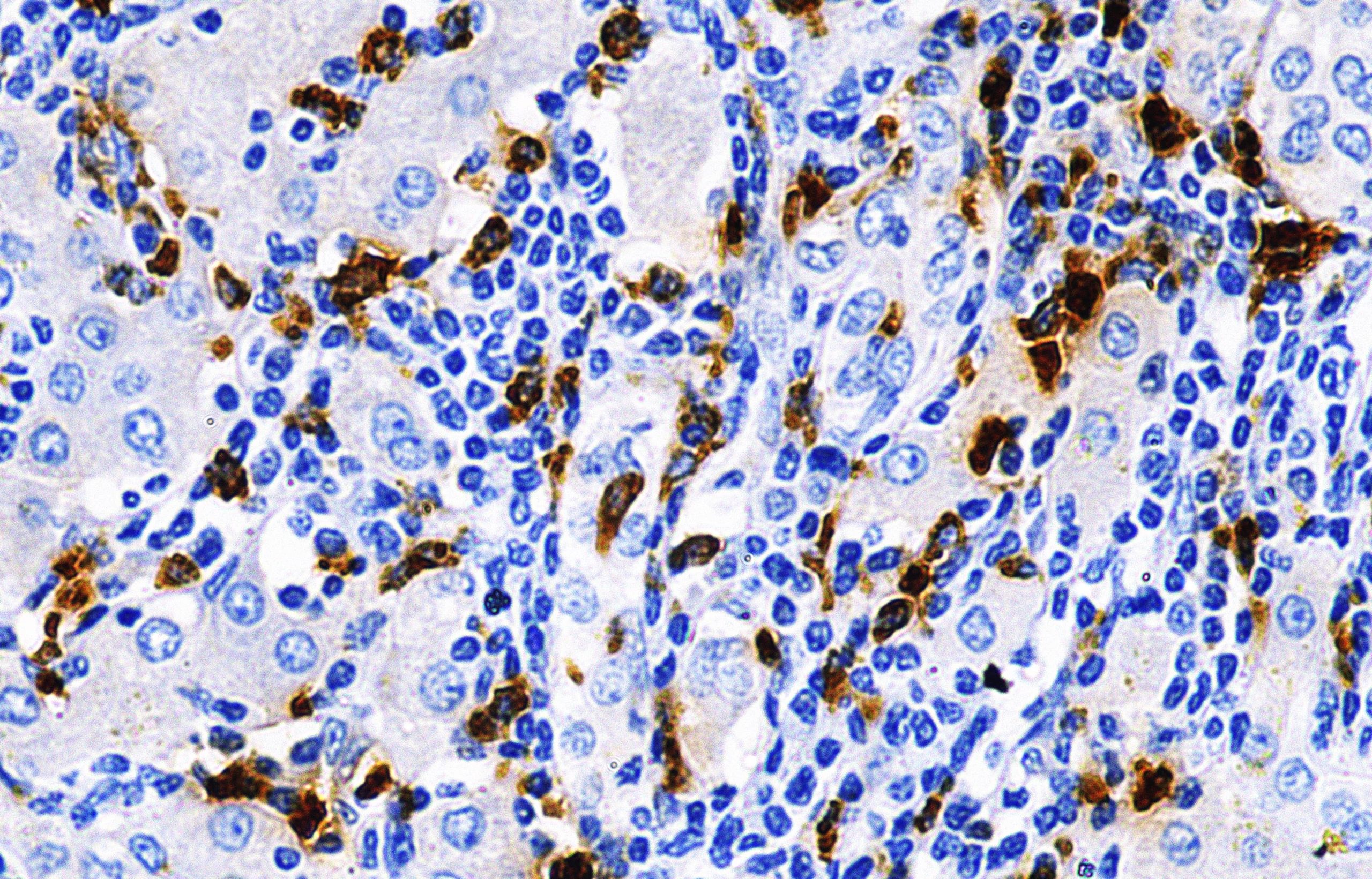 Myeloperoxidase (MPO) is a heme protein essential for innate immunity and is primarily located in neutrophils. It plays a critical role in pathogen defense by producing antimicrobial hypochlorous acid from hydrogen peroxide. While it is crucial for immune responses, MPO-generated reactive oxidant species, including hypochlorous acid, can also contribute to tissue damage during inflammation. Clinically, MPO serves as a valuable marker for identifying neoplastic tissues, aiding in the detection of cells associated with various cancers like acute myelogenous leukemia and progranulocytic leukemia.