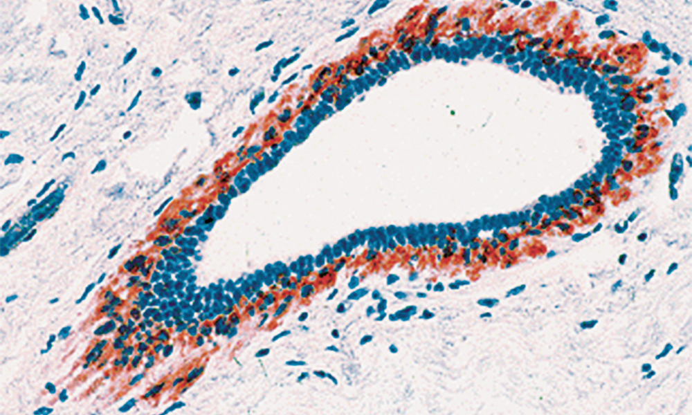 SMMS-1 is a 204 kDa myoepithelium-associated protein and is a marker for smooth muscle cell phenotypes. Monoclonal antibody to smooth muscle myosin heavy chains in combination with monoclonal antibodies to calponin and heavy caldesmon may be used to study the differences between benign, in-situ lesions and invasive carcinomas. This antibody has been designed for specific localization of both vascular and visceral smooth muscle