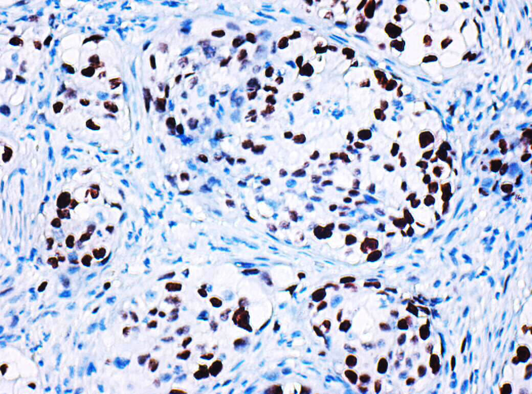 The p21/WAF1 protein is a p53 regulated gene product has been shown to mediate cell cycle arrest. The growth arrest is due to several properties of this protein, namely cyclin dependent kinase inhibition, and maintenance of cell cycle arrest at G2 by blocking the interaction of Cdc25C with PCNA and inhibition of stress activated protein kinases. In breast cancer the p21/WAF1 expression is in general seen to be negative.