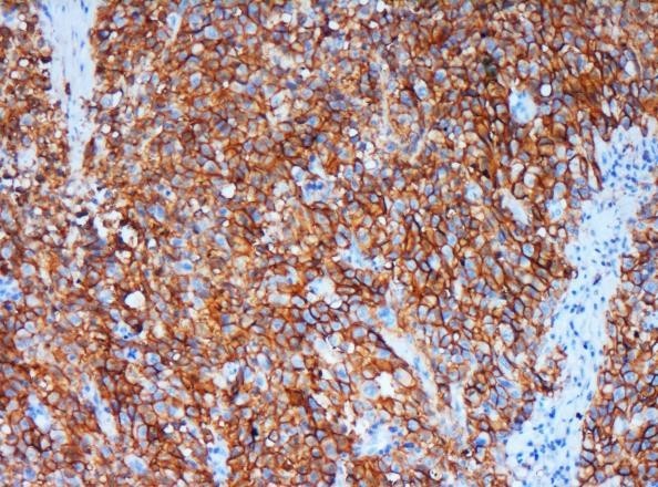 PD-L1 (Programmed death receptor ligand 1) also designated as B7-H1 or CD274, is a B7 related protein belonging to the BTN/MOG family. It is a 40 kDa type I transmembrane protein that binds to its receptor, PD-1, found on CD4 and CD8 thymocytes, activated T and B lymphocytes and myeloid cells. As a result of this interaction, T-cell receptor (TCR)-mediated proliferation is attenuated and an active immune response is prevented. This mechanism is often co-opted by tumors and is thought to play an important role in tumor immune evasion. It is expressed on T lymphocytes, NK cells, B lymphocytes, dendritic cells, as well as IFNγ stimulated monocytes, epithelial cells, and endothelial cells. PD-L1 is expressed in several tumor types, including melanoma, breast, ovary, colon, lung, and renal cell carcinomas.