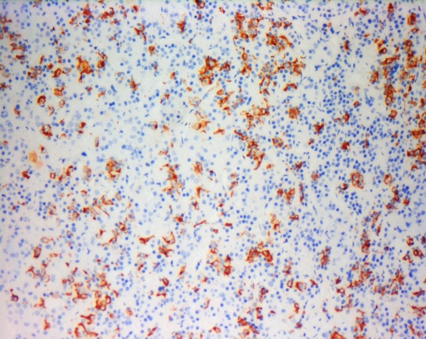 Prolactin is known to be a protein hormone that promotes lactation in mammals. Present in the anterior region of the pituitary gland, it has the ability to promote lactation in response to the suckling stimulus of hungry young mammals. The protein hormone Prolactin is almost always associated solely with the pituitary gland but worth noting, is the fact that it is also synthesized within the central nervous system, the immune system, the uterus and its associated tissues of conception, and even the mammary gland itself. Moreover, its biological actions are not limited solely to reproduction because it has been shown to control a variety of behaviors and even play a role in homeostasis. Prolactin also plays a role in carcinogenesis especially Breast and Prostate cancers as a result of increased Prolactin receptors. The similarity of prolactin with growth hormone and its actions through the growth-promoting JAK/STAT pathway suggest its tumor-promoting effects. When the production of prolactin in blood is elevated it leads to a condition known as Hyperprolactinemia. Using Immunohistochemistry staining, the Prolactin protein hormone is seen in the cytoplasm of anterior lobe cells of Pituitary tissues.